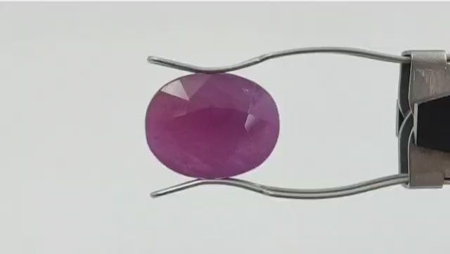 Visible pinkish-red color with clear internal marks. This ruby is typically heat-enhanced to improve its color and clarity, offering good energy for balanced results in life.
